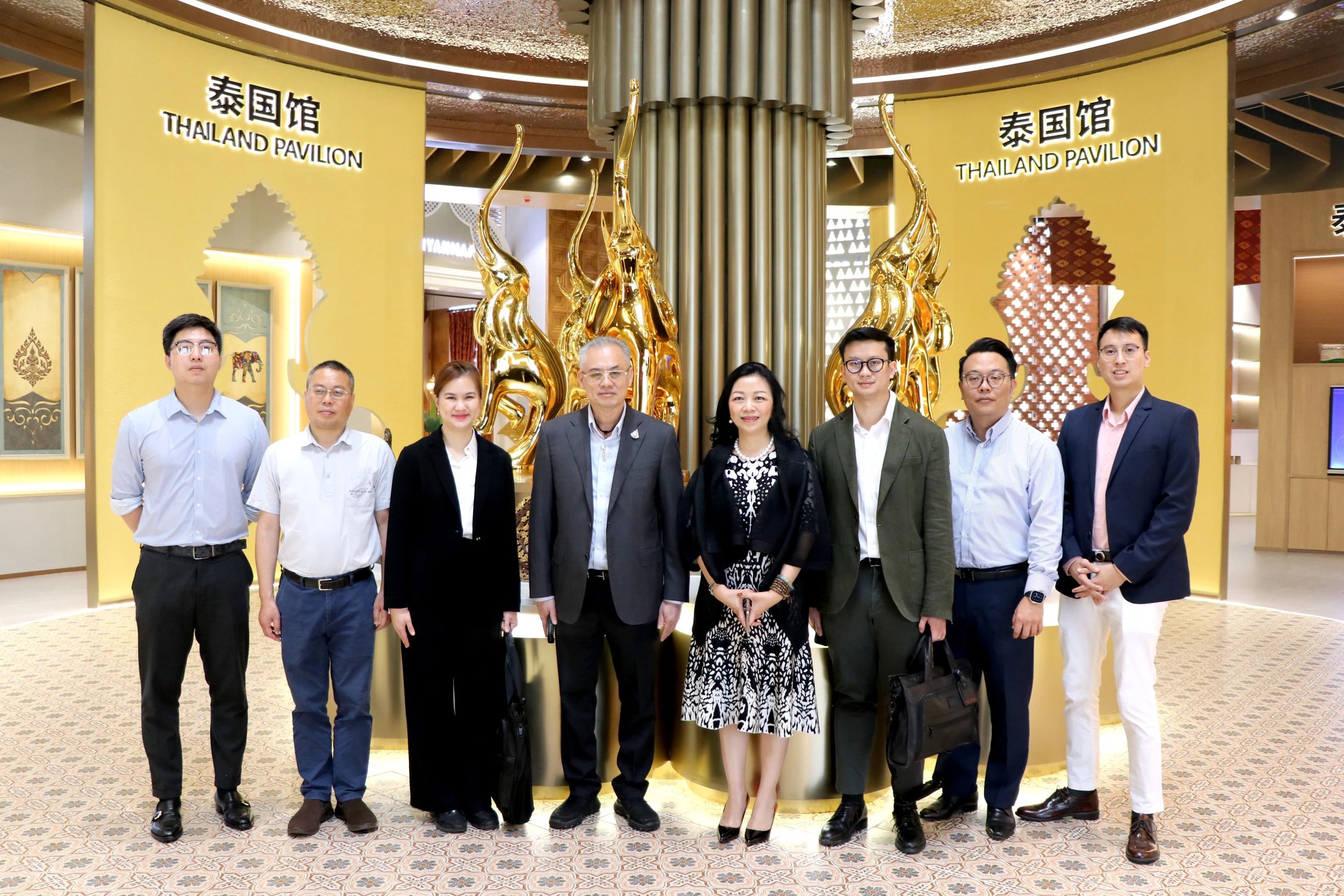 在參觀匯聚中心主題展館的過程中,考察團(tuán)一行興致濃厚,紛紛拍照留影,并對匯聚中心通過人文設(shè)計(jì)理念烘托出各國當(dāng)?shù)靥厣a(chǎn)品,以沉浸式的獨(dú)特商品貿(mào)易體驗(yàn)促進(jìn)交易的做法表示認(rèn)可。蘇威特總裁提到,2019年他就來過中新物流園,時(shí)隔4年,再次到訪考察,讓他深深地感受到了園區(qū)發(fā)展的迅猛速度。同時(shí)這也是他第一次實(shí)地參觀匯聚中心,匯聚中心創(chuàng)新的理念和精美獨(dú)特的設(shè)計(jì)給了他很大的驚喜。他認(rèn)為匯聚中心在中國與泰國乃至其他東盟國家的經(jīng)貿(mào)往來中扮演了重要角色,提供的商品免費(fèi)展示平臺降低了入駐商家的運(yùn)營成本,讓更多泰國特色產(chǎn)品有機(jī)會進(jìn)入中國市場,被更多人所熟知。未來他們將推介更多泰國的客商和產(chǎn)品入駐匯聚中心,希望通過匯聚中心更好地搭建中泰交流合作的橋梁,加強(qiáng)雙方在商貿(mào)物流等領(lǐng)域的合作。