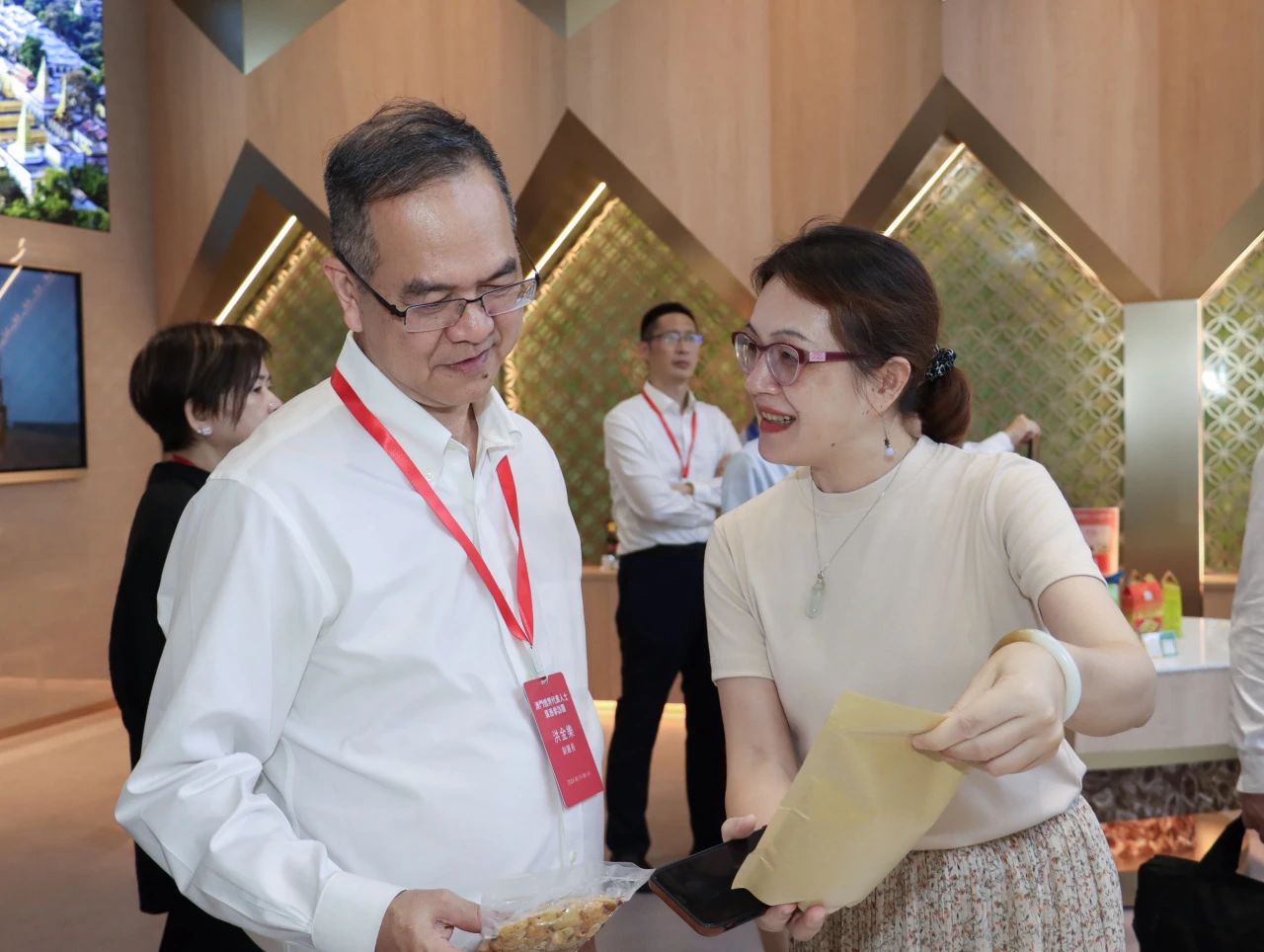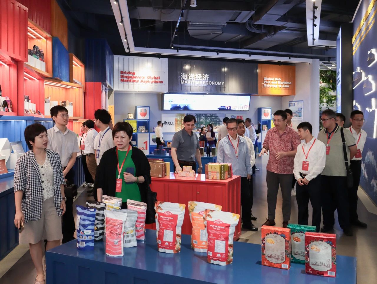 在匯聚中心,參訪團(tuán)從東盟國家主題館參觀到RCEP其他區(qū)域國家主題館,一路興致盎然,熱情咨詢項目的相關(guān)信息并不斷合影留念。他們紛紛表示,匯聚中心各館融合了各國當(dāng)?shù)靥厣ㄖ懊袼罪L(fēng)情元素,巧妙將各國特色產(chǎn)品進(jìn)行突出展示與銷售,這樣的方式十分特別,對商家與消費者來說是一種創(chuàng)新的體驗。其中,來自澳門各東盟國家商會的會長們,對各自國家的主題展館尤其感興趣,當(dāng)即就商品入駐流程及具體事宜與匯聚中心團(tuán)隊進(jìn)行詳細(xì)對接,現(xiàn)場氣氛熱烈!