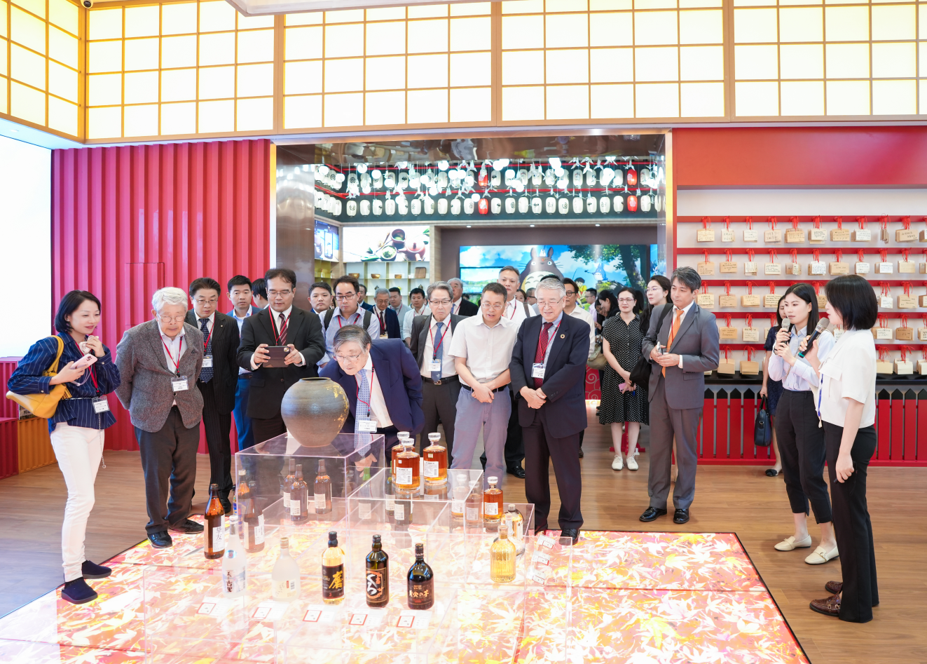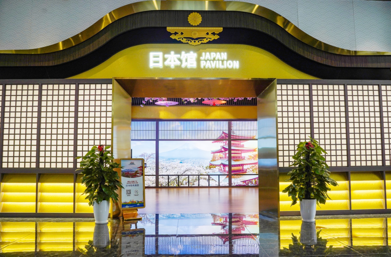 來到日本館,濃郁的日式風(fēng)情撲面而來,代表團(tuán)紛紛駐足拍照留念。作為匯聚中心獨具特色的四季主題館,日本館以“季節(jié)流轉(zhuǎn)”為設(shè)計主線,巧妙融合了日本傳統(tǒng)建筑美學(xué)與現(xiàn)代展示技術(shù),加之結(jié)合浮世繪的意境、茶道的禪意、花道的雅致,打造出移步換景的沉浸式體驗空間,讓訪客在有限的空間內(nèi)領(lǐng)略到日本文化的精髓。