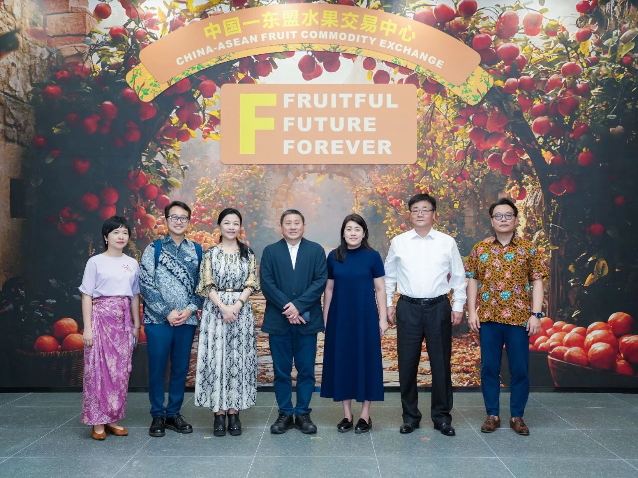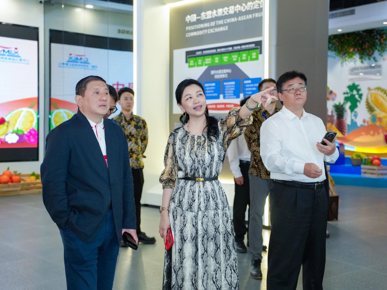 考察組還走進(jìn)水果交易中心展廳,就中國與東盟水果貿(mào)易情況進(jìn)行了溝通交流。陳海泉大使表示,此次到訪認(rèn)識到了中國南北方水果的差異,也了解了廣西作為中國水果第一大省區(qū)的獨特優(yōu)勢,在廣西建設(shè)水果交易中心大有可為。新加坡雖不是水果主要生產(chǎn)國,但依托世界重要的轉(zhuǎn)口港基礎(chǔ)設(shè)施及先進(jìn)的冷鏈物流體系,可在水果精深加工、先進(jìn)保鮮技術(shù)等方面進(jìn)行深化協(xié)作,希望借助水果交易中心,高效銜接中國與東盟水果產(chǎn)業(yè)鏈資源,助推更多優(yōu)質(zhì)果品通過新加坡更好地走向國際,共享全球廣闊市場。