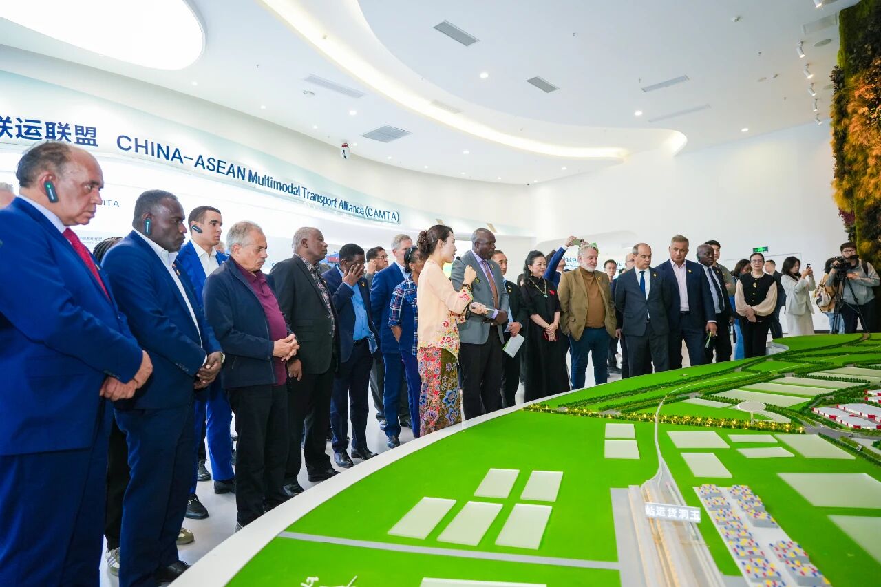在中新物流園展示中心,駐華使節(jié)代表團(tuán)通過圖文講解、動(dòng)態(tài)演示等形式,了解項(xiàng)目的發(fā)展情況,進(jìn)一步對西部陸海新通道的戰(zhàn)略地位與廣西作為通道關(guān)鍵節(jié)點(diǎn)的核心作用有了更深的認(rèn)識。作為廣西參與“一帶一路”及推進(jìn)中國與新加坡互聯(lián)互通、西部陸海新通道建設(shè)的項(xiàng)目之一,中新物流園自啟動(dòng)建設(shè)以來,展現(xiàn)出蓬勃的發(fā)展活力。園區(qū)通過“以商招商”的模式,目前已引進(jìn)超30家世界500強(qiáng)和中國物流100強(qiáng)龍頭品牌企業(yè)合作入駐,產(chǎn)業(yè)集聚效應(yīng)持續(xù)增強(qiáng),已形成有別于其他物流園區(qū)的產(chǎn)業(yè)發(fā)展模式。