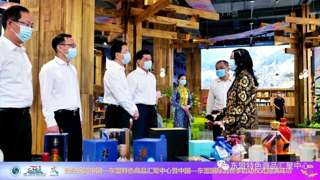 啟動儀式結束后,張曉欽等自治區(qū)及南寧市領導、東盟各總領事、企業(yè)代表等一同參觀了中國—東盟特色商品匯聚中心展館,對匯聚中心的創(chuàng)新理念給予充分地肯定。在設計藝術上,展館不僅突顯各個東盟國家獨具匠心的人文風情和建筑風格;在商品展示中,還陳列了各式各樣別具特色的RCEP國家特色商品,如廣西的網紅“螺螄粉”;東盟國家的咖啡、燕窩、芒果干等產品;巴基斯坦的工藝品;健康養(yǎng)生的清真食品等,讓人賞心悅目,味覺大開,給來賓帶來沉浸式的貿易體驗,觸動了現(xiàn)場嘉賓消費的熱情,更讓現(xiàn)場參觀的商家贊不絕口,對入駐匯聚中心表示極大的熱情。