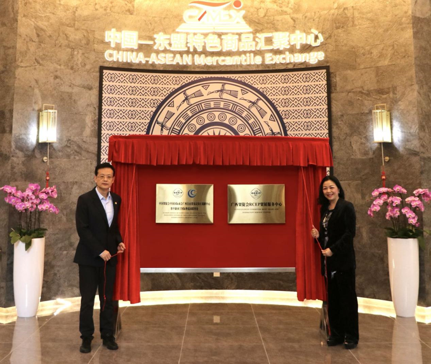 2022年11月15日,中國貿(mào)促會/中國國際商會廣西自由貿(mào)易試驗區(qū)調(diào)解中心駐中新南寧國際物流園(以下簡稱“中新物流園”)聯(lián)絡(luò)處和廣西貿(mào)促會RCEP貿(mào)展服務(wù)中心在中國—東盟特色商品匯聚中心(以下簡稱“匯聚中心”)正式揭牌。廣西貿(mào)促會黨組書記、會長魏然,廣西新中產(chǎn)業(yè)投資有限公司董事長/中國—東盟特色商品匯聚中心董事長趙海燕等相關(guān)領(lǐng)導(dǎo)共同見證了本次揭牌活動。