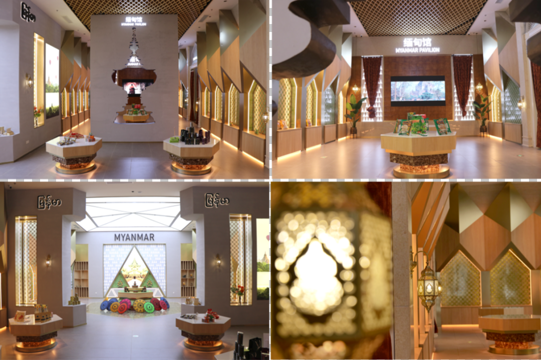 2021年,中新南寧國際物流園聯(lián)合中國—東盟博覽會(huì)秘書處共同打造了獨(dú)具特色的中國—東盟特色商品匯聚中心(以下簡稱“匯聚中心”)。其中,匯聚中心精心設(shè)計(jì)的緬甸館,以緬甸傳統(tǒng)特色文化為基調(diào),通過提取緬甸經(jīng)典的佛塔造型、翡翠色調(diào)、寶石切割面、漆器形狀等元素,結(jié)合緬甸風(fēng)土人情,巧妙融合到設(shè)計(jì)之中,向公眾呈現(xiàn)一個(gè)“金色緬甸”的效果。自匯聚中心于2022年9月14日正式啟動(dòng)以來,緬甸駐南寧總領(lǐng)事館總領(lǐng)事覺梭登就數(shù)次到訪匯聚中心,尤其對緬甸館能夠在有限的空間里充分展示緬甸多元文化與特色產(chǎn)品的設(shè)計(jì)理念感到極其認(rèn)同。