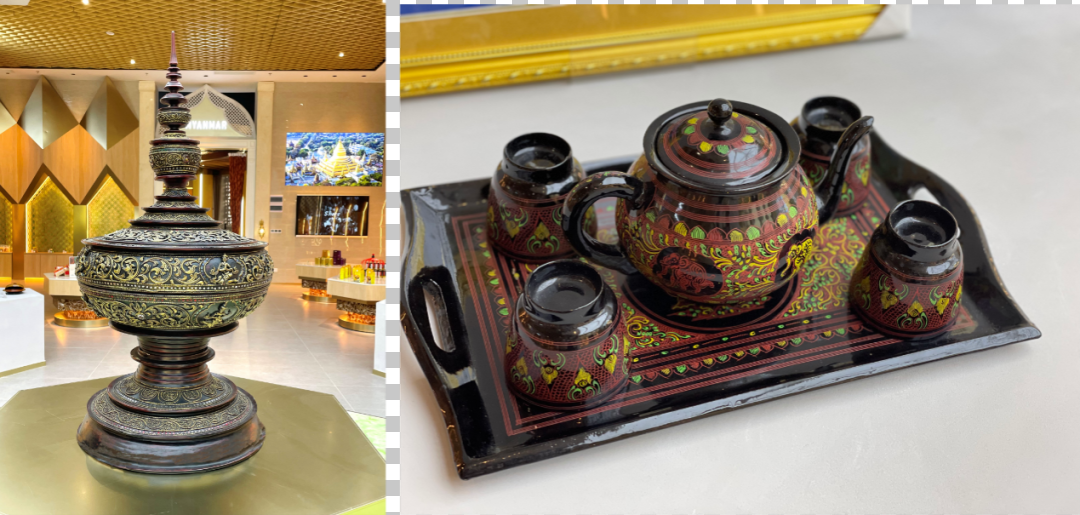 在緬甸館,覺梭登總領(lǐng)事親自就展館陳列的特色產(chǎn)品及傳統(tǒng)手工藝品進(jìn)行了詳細(xì)地介紹。他表示,緬甸有很多特色產(chǎn)品,比如木雕及珠寶、玉石、勃生傘、草帽、籃筐、席子、茶葉、醬料、香米、啤酒等,深受大眾喜愛,尤其是緬甸蒲甘的漆器。漆器制作過程中所用到的漆料和其他顏料都是純天然的,非常環(huán)保。作為緬甸人民生活中不可或缺的工藝品,漆器因其精美的外形、做工考究、實(shí)用的功能得到世界各國旅游者的青睞。他認(rèn)為,匯聚中心緬甸館無論是在設(shè)計(jì)上還是產(chǎn)品陳列上,都能讓大眾對緬甸有更深刻的認(rèn)識(shí),滿足人們對緬甸的探索之心??傤I(lǐng)事的精彩介紹讓大家對緬甸文化有了進(jìn)一步的了解,同時(shí)也吸引了其他到館嘉賓的駐足聆聽。